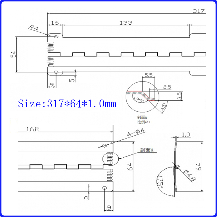 產(chǎn)品名稱:  文件夾鋁合頁317*64*1.0mm,特殊鋁合頁